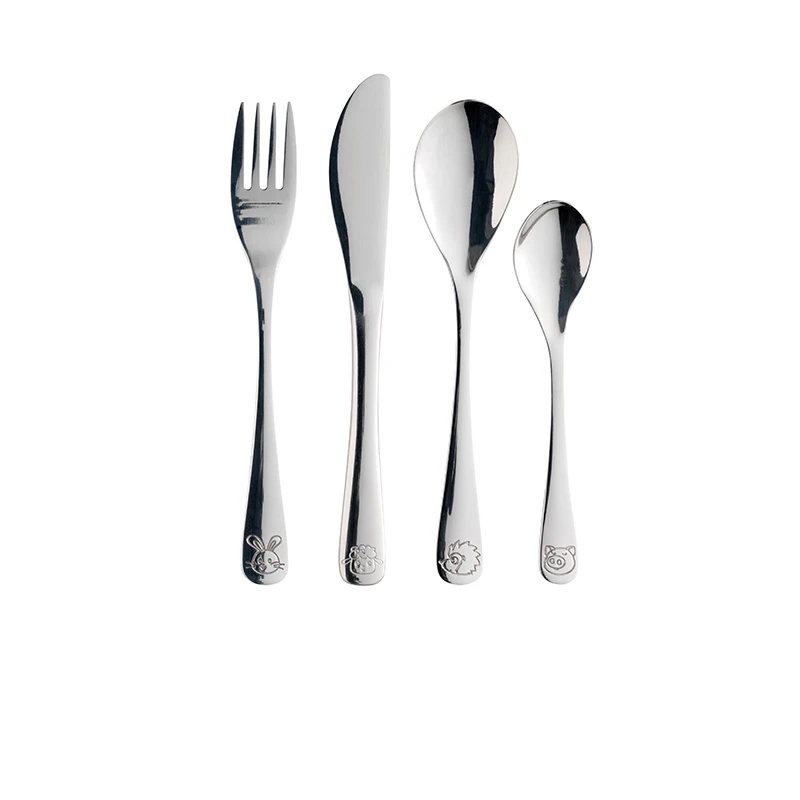 Enkelt og klassisk børnebestik med søde dyr indgravere.