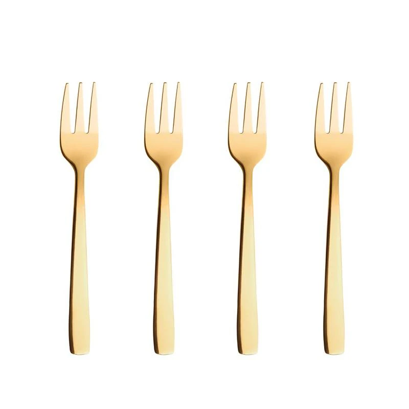 Aida RAW kagegafler 4 stk med belægning der får bestikket til at ligne det er guldbelagt.