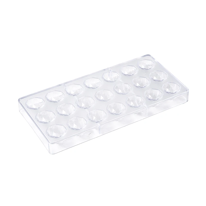 Blomsterbergs chokoladeform er en professionel chokoladeform i hård plast til fremstilling af hjemmelavede, støbte chokolader.
