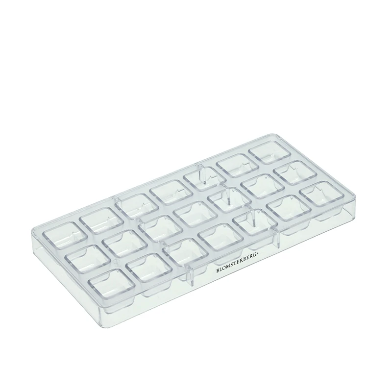 Er der en Chocolatier gemt i maven på dig eller en du holder af? Med denne professionelle chokoladeform i hård plast fra Mette Blomsterberg, kan der laves de lækreste fyldte chokolader i en skøn firkantet form. Hver opmærksom på at formen ikke tåler fryser, ovn eller opvaskemaskine. Når formen skal rengøres, er det under varmt vand uden brug af sæbe for at undgå at chokoladen hænger fast. Der tørres herefter af med et viskestykke og efterfølgende lidt vat for at sikre, at alle rester bliver fjernet fra rillerne. Det kan også være en fordel at polere formen med vat inden brug.