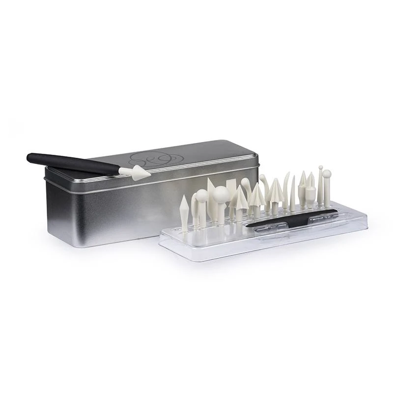 Med alle disse forskellige redskaber kan du skabe, modellere mønstre og dekorationer.