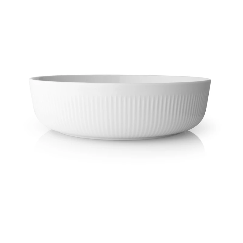 Eva Trio Legio Nova skål 3,3 ltr. Flot skål til servering og anretning af fx salater, frugt, pasta, grøntsager mv. Skålen danner en elegant ramme om enhver anretning uanset om det er til hverdag eller gæstebordet. Porcelænet er kendt for de flotte riller der er med til at danne en flot ramme og fremhæve anretningen. Tåler maskinopvask, fryser og ovn samt mikroovn. 10 års porcelænsgaranti