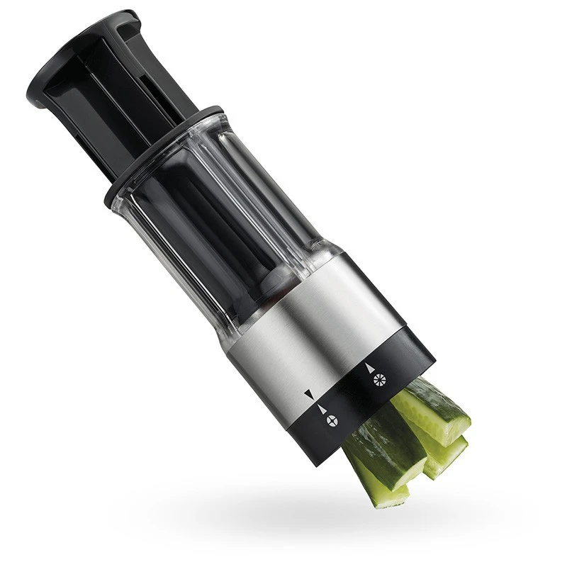 Med Flexicut er det hurtigt og ikke mindst nemt at lave grøntsagsstænger, kartoffelbåde, frugtsalat og meget mere. Flexicut kan justeres så der enten laves 4 eller 8 stykker. Skæret er fremstillet i japansk stål så den skærer godt og nemt. Tåler opvaskemaskine