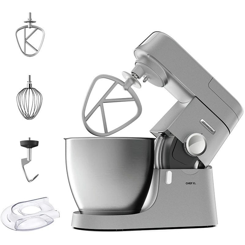 Stærk Kenwood køkkenmaskine der letter madlavningen når du skal bage og lave mad. Uanset hvilken type dej du skal røre – fra pandekagedej til surdej kan denne maskine klare det. Stor skål på hele 6,7 liter gør at du kan lave dejligt store portioner. 1200 watts motor der klarer alt fra de lette deje op til en kraftig rugbrødsdej. Leveres med K-spade, dejkrog og piskeris samt stænklåg. Trinløs indstilling af hastighed. Kenwood Chef XL køkkenmaskinen har et kraftudtag der gør det muligt at tilslutte en masse forskelligt udstyr fra en blender til kødhakker.