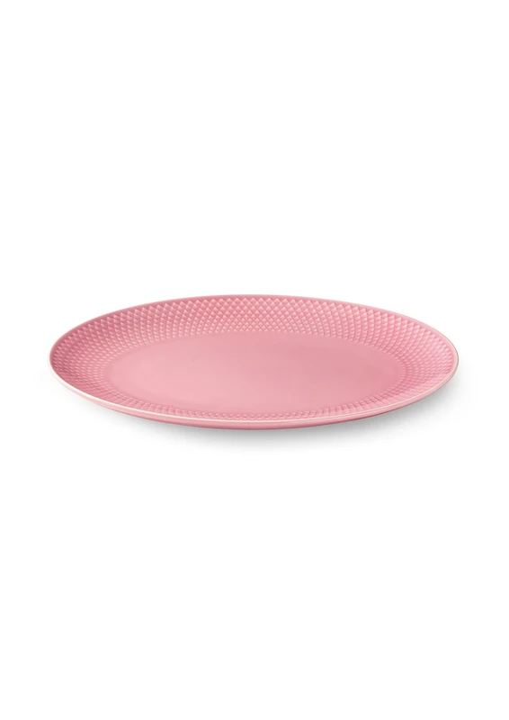 Rhombe Colors markante og moderne farver er udviklet i samarbejde af designduoen Stilleben, der ligesom Lyngby Porcelæn er drevet af en passion for nye idéer og et ønske om at genopdage og gentænke den keramiske arv. Den rosa farve er udgangspunktet for et helt nyt serveringsfad, der er 28,5 cm langt og dermed er lidt mindre end det eksisterende lilla fad i serien. Formen er oval, og den lille størrelse er perfekt til servering af små retter, lidt til den søde tand, som frugtfad eller som base for en dekorativ opstilling. Design Stilleben