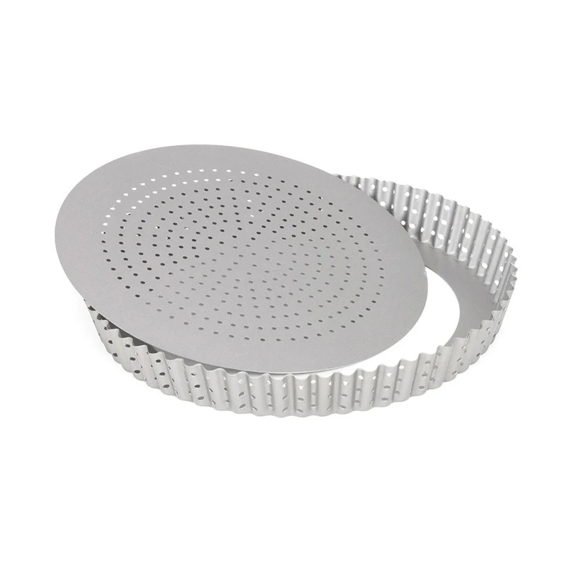 Den perforerede form gør det nemmere at bage en sprød tærtebund da varmen nemmere kommer til dejen og lader fugten fortrænges.