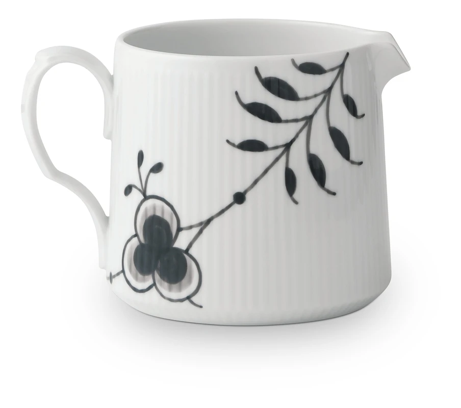 Denne elegante kande kan anvendes til alt fra mælk, vand, juice eller sovs. Du kan også finde et par blomster og sætte den på bordet som en utraditionel vase. Kollektionen Sort Mega Riflet er et smukt bevis på, at selv de mest klassiske traditioner kan tåle at blive udfordret. Stellet går godt sammen med de andre kollektioner fra Royal Copenhagen.