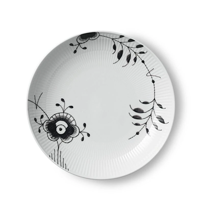 Denne moderne form kombinerer den traditionelle flade tallerken og en dyb tallerken i én, hvilket blandt andet gør den perfekt til stilfulde anretninger og gourmetserveringer. Kan også sagtens bruges som et serveringsfad. Kollektionen Sort Mega Riflet er et smukt bevis på, at selv de mest klassiske traditioner kan tåle at blive udfordret. Stellet går godt sammen med de andre kollektioner fra Royal Copenhagen.