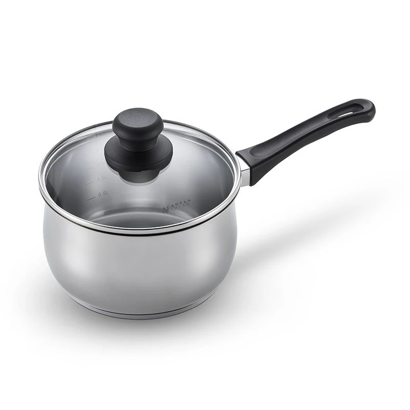 Grydens buttede form gør det nemt at røre helt ud i siderne. Kanten er designet så der kan hældes uden dryp. Ovnfast op til 210 grader. Scanpan yder 5 års garanti på dette produkt.