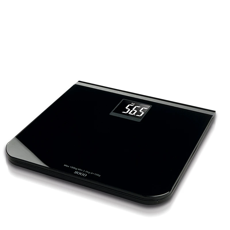 Denne smarte digitale badevægt med højstyrke glasbund har et elegant sort design, som passer ind på de fleste badeværelser. Badevægten måler fra 2-150 kg med en graduering på 100 gram. Du kan også selv vælge, hvad du ønsker vægtenheden skal være: KG, LB eller ST. Udover det stilfulde design har vægten et smart LED display med baggrundsbeslysning samt autosluk funktion. Desuden har badevægten en overbelastnings- samt lav batteri indikator. Der skal bruges 2x AAA batterier. Hver opmærksom på at disse ikke medfølger, men skal købes separat.