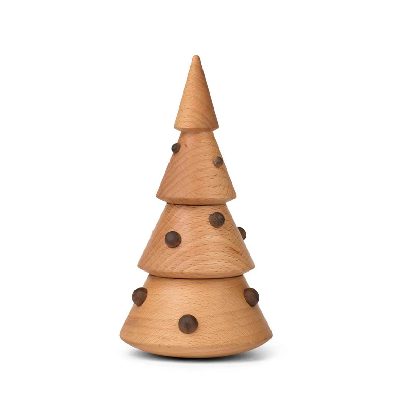 Et juletræ i en skøn kombination af valnød og bøgetræ designet af Thor Høy for Spring Copenhagen. Dette juletræ er så enkelt og fint, at det passer ind i de fleste hjem – og kan fint stå sammen med andet mere farverigt julepynt. Juletræet vil naturligvis elske at stå sammen med Spring Copenhagen julemand, som er skabt i lignende moderne og nordiske stil. Juletræet skaber hyggelig stemning på en diskret måde i hjemmet, og kan også godt tåle at blive leget lidt med. Juletræet er en del af Tumblers konceptet fra Thor Høy, hvor ikoniske træfigurer og dyr skabes i kombination af fri fantasi og nøje iagttagelser. På denne måde forstærkes figurernes personlighed, og de fremstår mere levende.