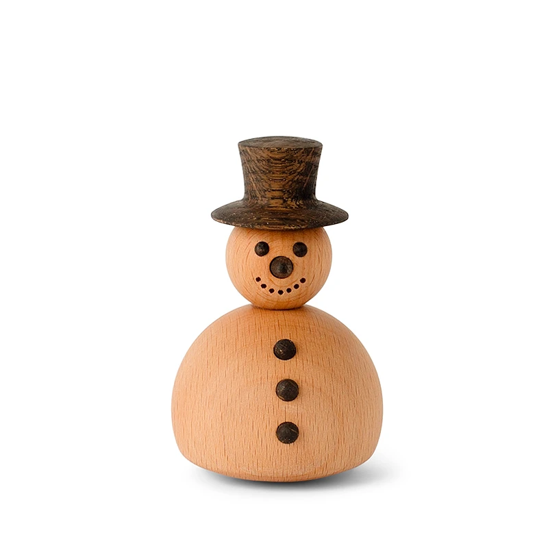 En vaskeægte snemand der kan stå inden for hele julen og sprede hygge og glæde. Thor Høy står bag designet af denne finurlige træsnemand med høj hat og rare øjne. Der er så mange fine detaljer på denne snemand lige fra knapperne ned langs den runde mave til den spidse næse og den glade mund. Man skulle næsten tro, at det var en ægte snemand, der er tryllet om til træ – så naturtro er den magiske julefigur. Snemanden er lavet i FSC-certificeret bøg og bejdset eg, og er den perfekte advents- eller kalendergave til en du holder af. Hver snemand er håndsamlet, og der vil derfor være enkelte variationer fra produkt til produkt. Når du skal vedligeholde den fine snemand, skal du bare rense den med en fugtig klud. Brug meget gerne bivoks regelmæssigt, så snemanden kan stå flot i mange år. Hver opmærksom på at snemanden ikke er legetøj, og må derfor ikke benyttes af små børn.
