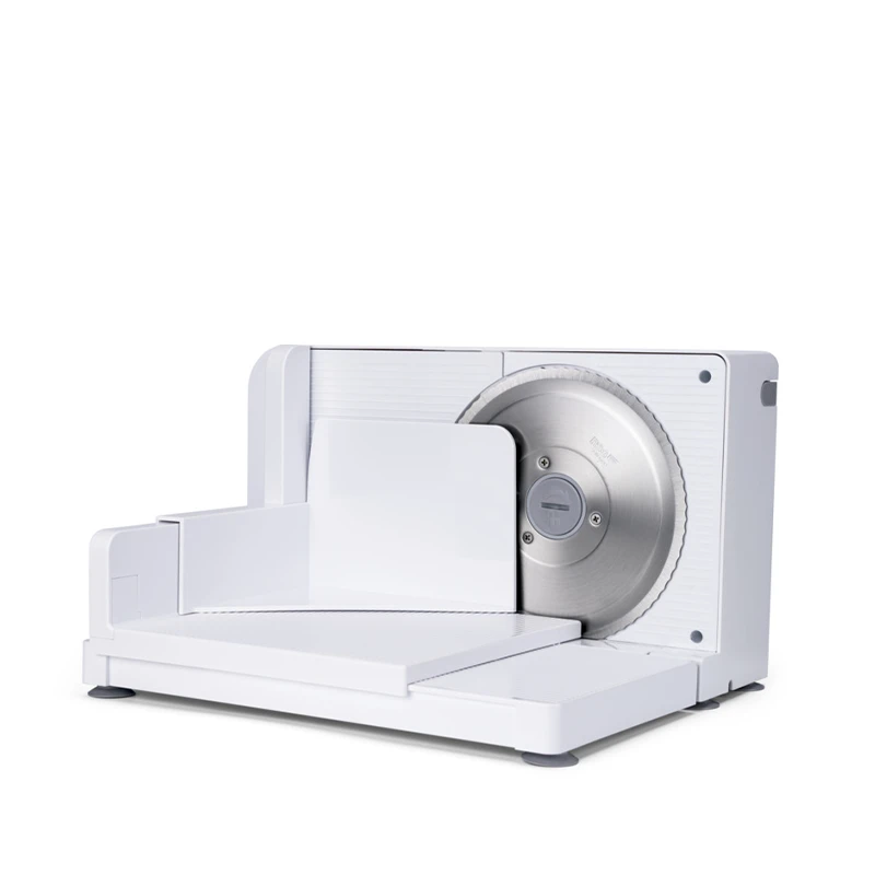 Med det justerbare skæresystem 0-20 mm. kan du skære dit pålæg i lige den størrelse der passer dig bedst. Maskinen er med rustfri stålklinge og Sikkerhedsknap. 120 watt.